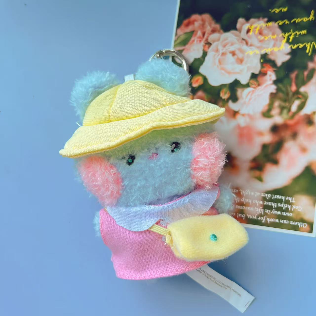 – Each plushie wears a small yellow hat and carries a mini yellow picnic bag
