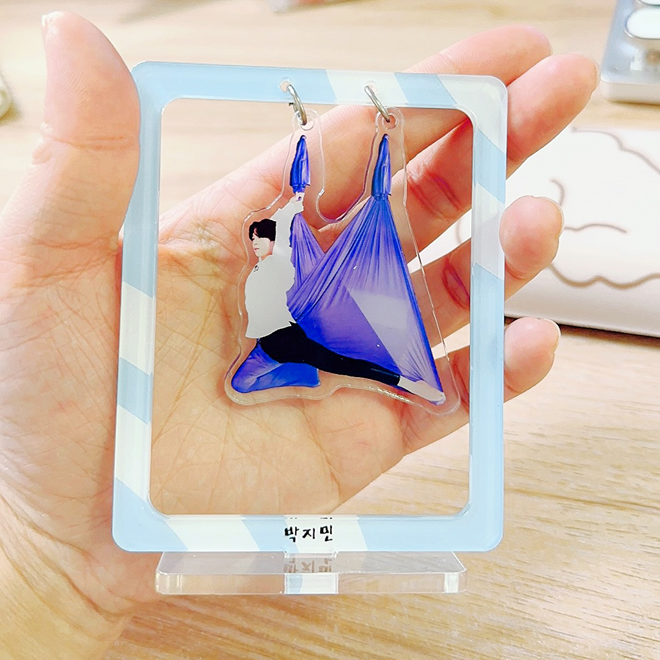 Standing under 10 cm, this sturdy acrylic standee is designed to swing gently,