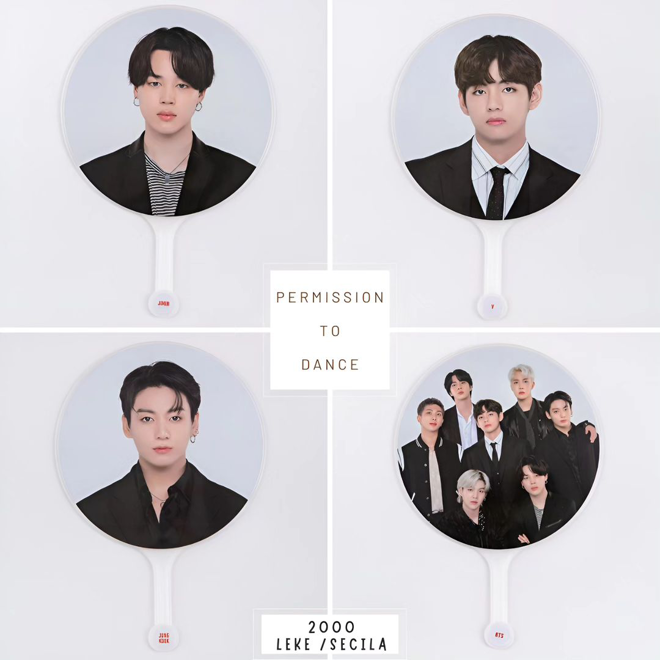 Experience the dynamic energy of the crowd with this portable paper fan featuring HD printed photos of the BTS Permission To Dance Tour.
