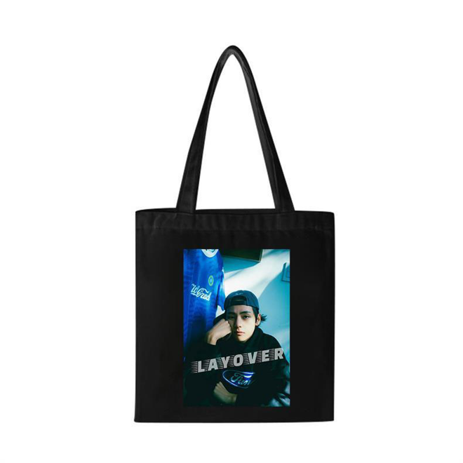 Elevate your style with our BTS Taehyung Layover tote bag, designed for both fashion and function.