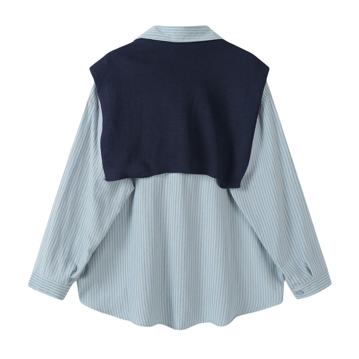 [PRE-ORDER] CuteGirl Striped Shawl Polo Collar Shirt – Women’s Early Autumn Casual Wear