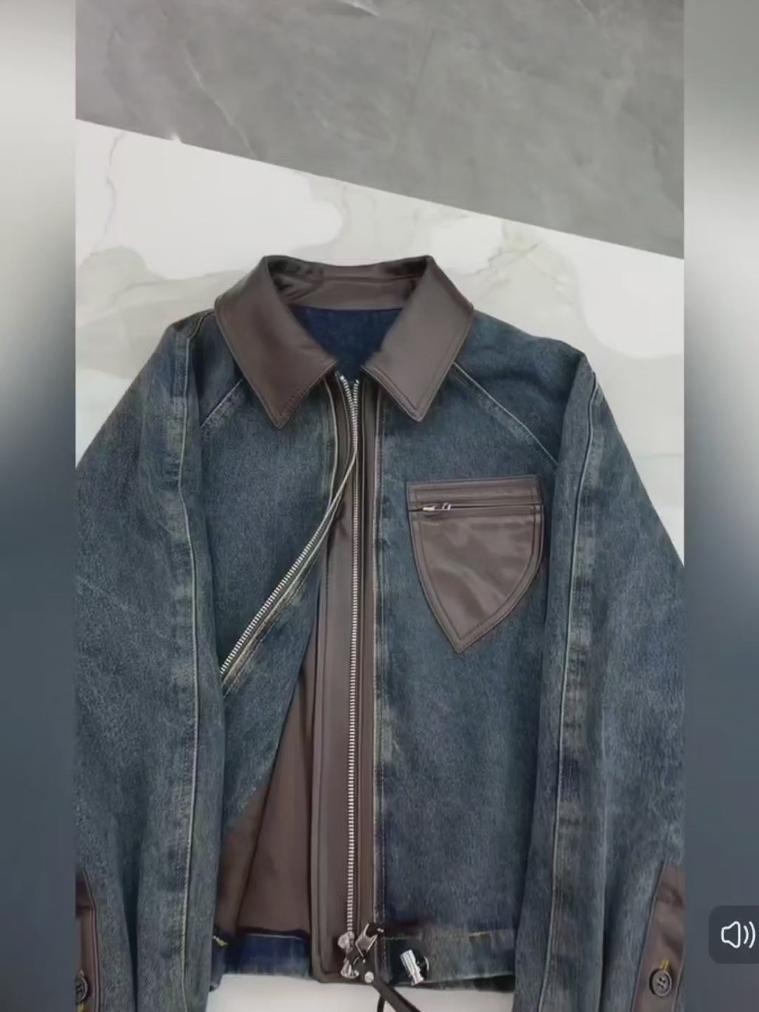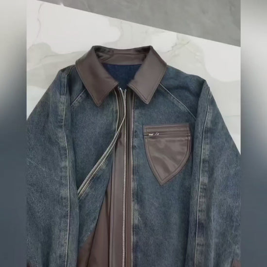 [PRE-ORDER] High-End Retro Blue Leather Denim Jacket (Autumn/Winter 2025)